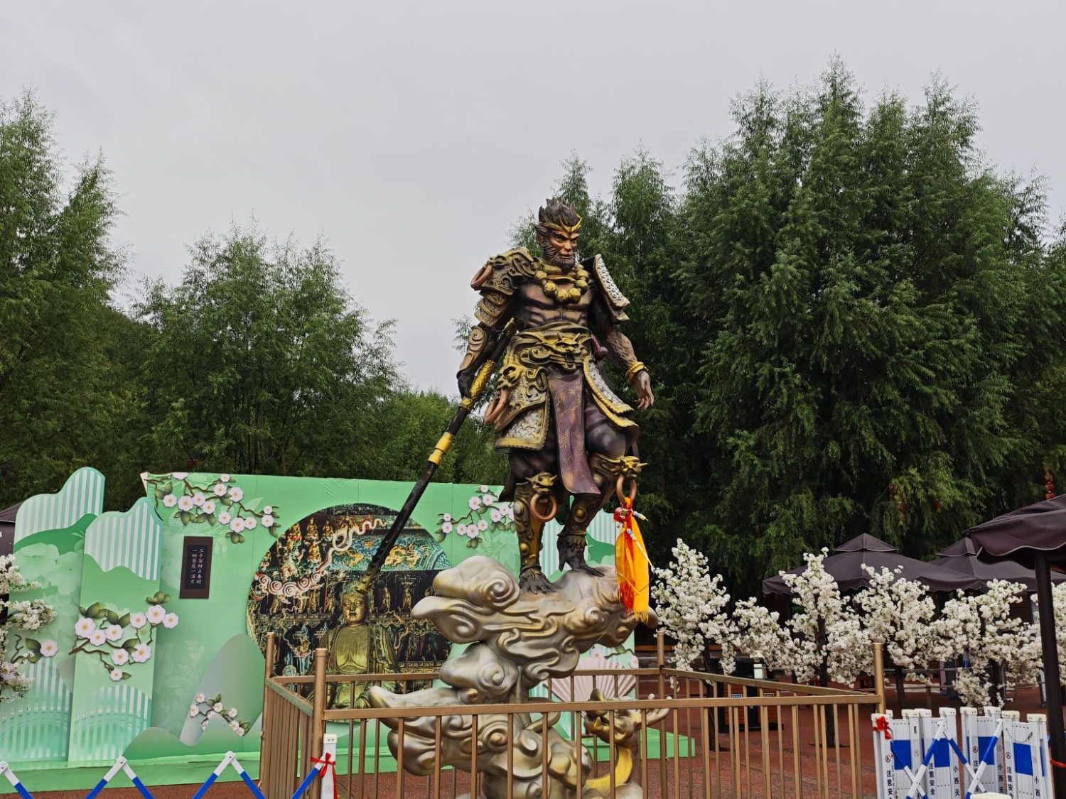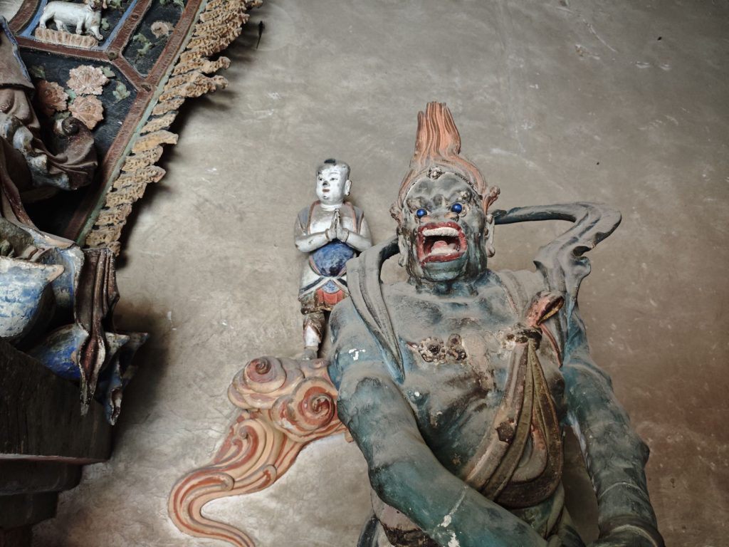 逛完后乘大巴长途跋涉,来到了黑神话的取景地之一——小西天。​小西天又名千佛庵,距今已有近400年历史。寺庙规模虽不大,但大雄宝殿内的悬塑佛像群非常震撼,殿内满布彩塑,天花板上、柱子间,都是造型精美贴金的佛像。