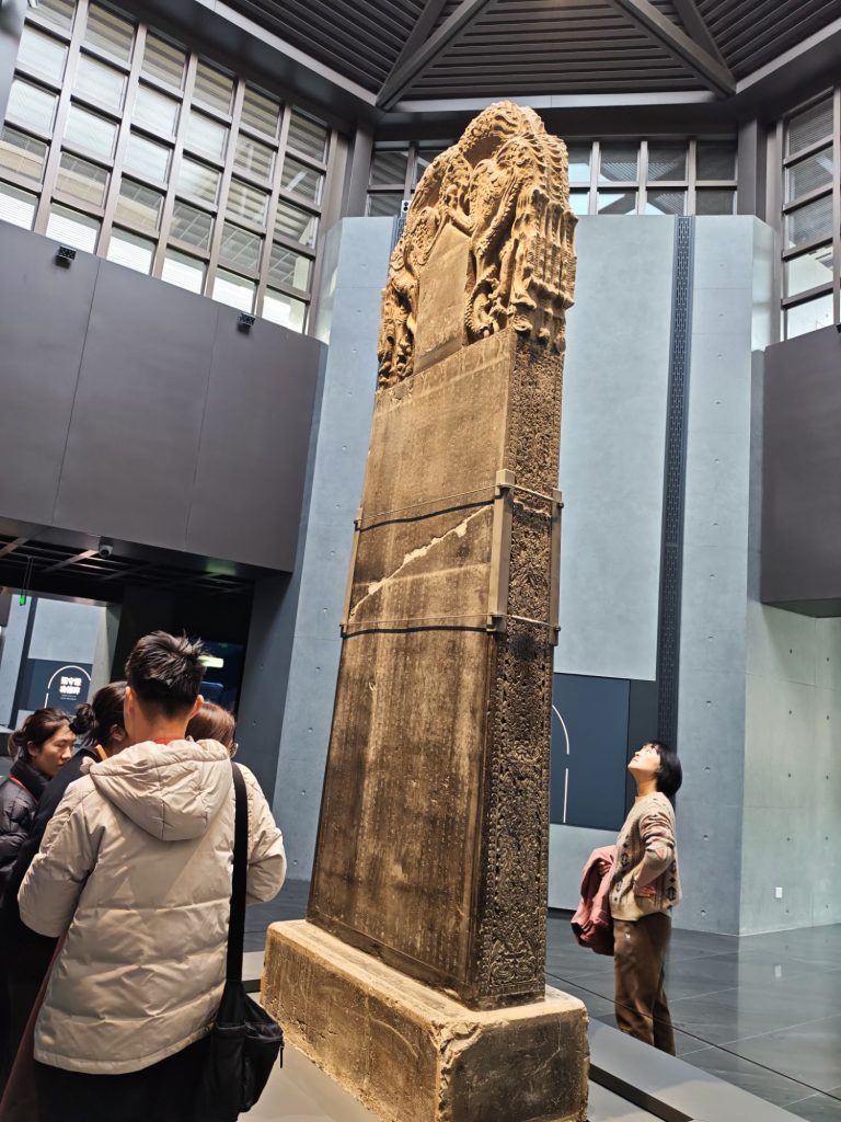 第二天早上去书院门逛了逛,娃买了个印章挂件,现刻印章五十块,挺值得。里面还有个摊位,有位老师在讲唐诗,听起来很专业,我就随手买了两本书给娃回来看。从书院门出来,顺便走到碑林博物馆。老婆没兴趣,我就带娃进去看了看。里面有王羲之、颜真卿的碑刻,非常珍贵,可惜娃也不太感兴趣。估计她长大以后再看,会后悔现在没好好看吧。